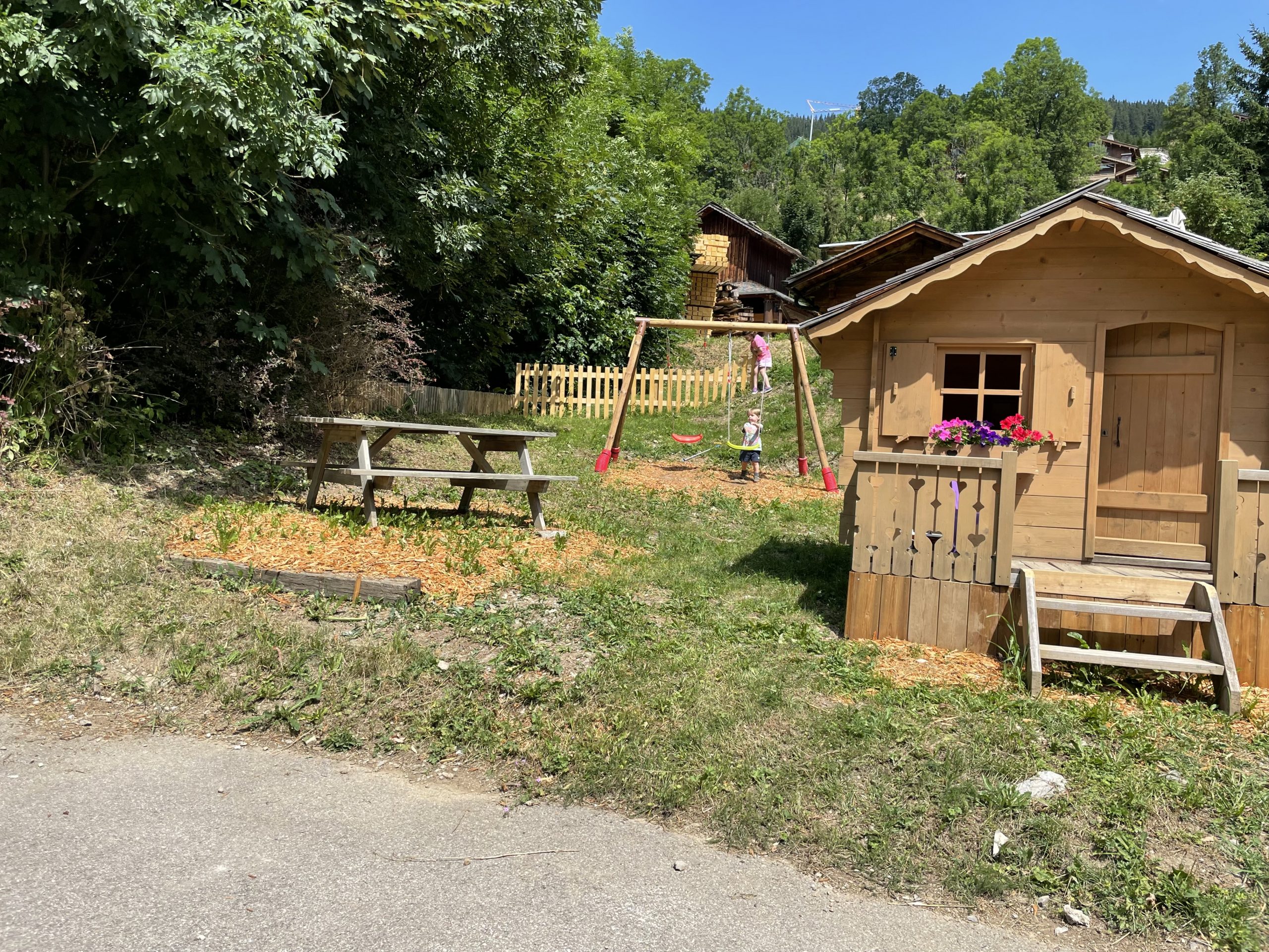 Le chalet est situé dans un hameau ce qui permet de vous offrir quiétude et tranquillité. Une aire de jeux avec un un chalet d’enfants et une balançoire.